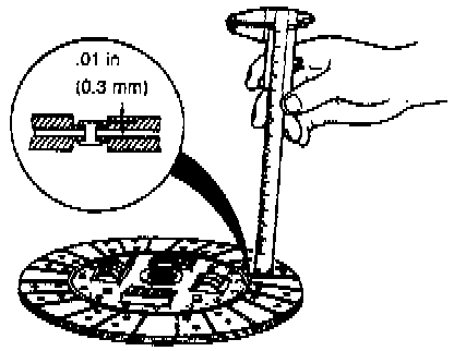 3. Measure depth of lining from clutch face to head of a rivet with calipers. Replace clutch disc if thickness on either side is less than minimum.