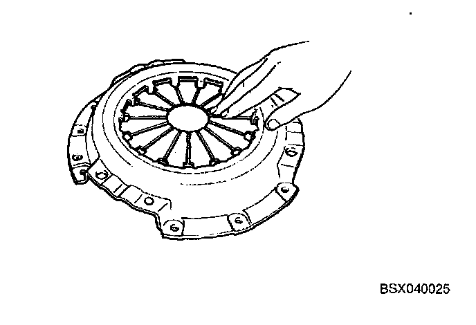 2. Inspect release bearing contact surface (on the diaphragm spring fingers) for wear and cracks. If there is wear or cracks on diaphragm fingers, replace clutch cover assembly.