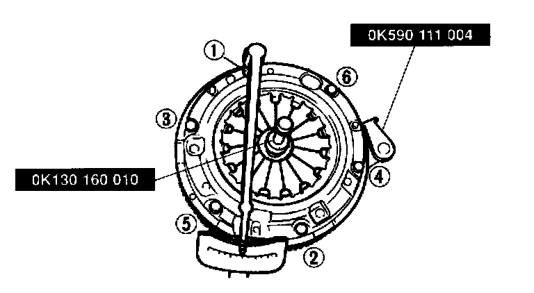 5. Hold clutch disc in position with SST (OK130 160 010).