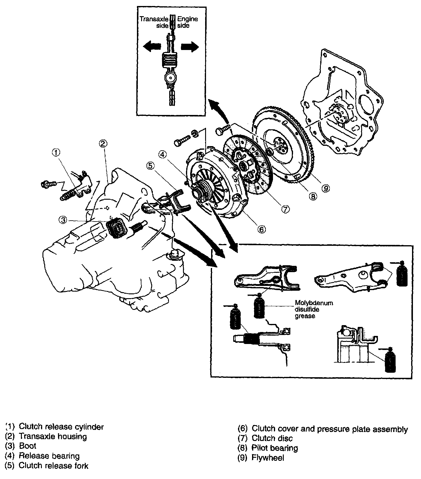 4. Clean clutch disc internal splines; then apply a thin coat of molybdenum disulfide grease to the splines.