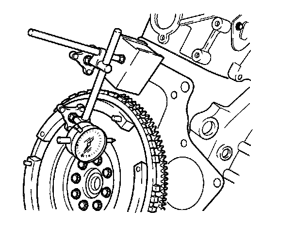 5. Measure flywheel runout with a dial indicator. Replace flywheel if runout is excessive.