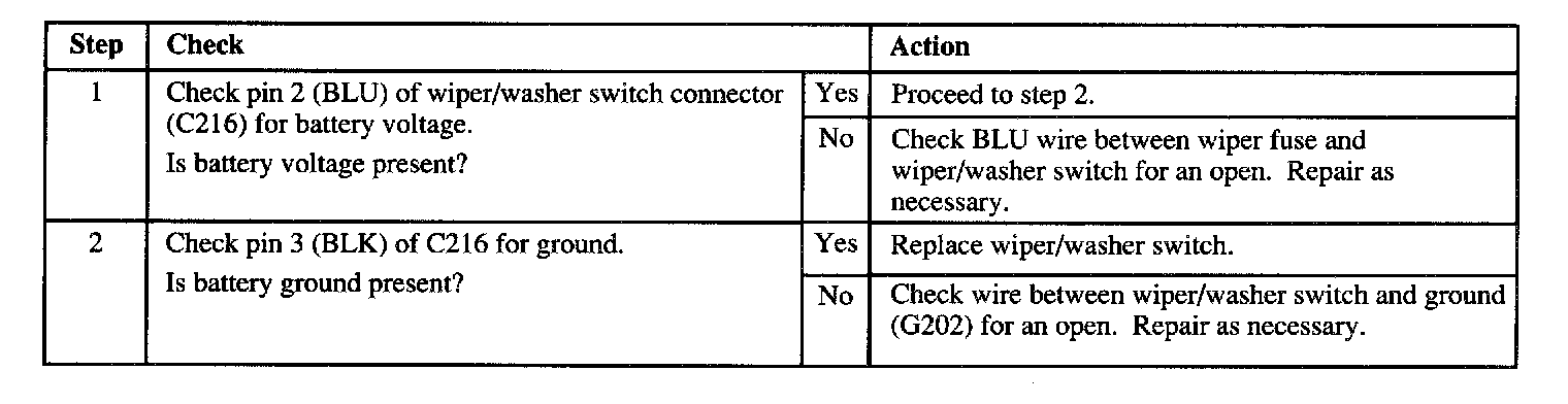 Check condition of "WIPER" fuse. If fuse is open, locate and repair source of overload. Replace fuse.