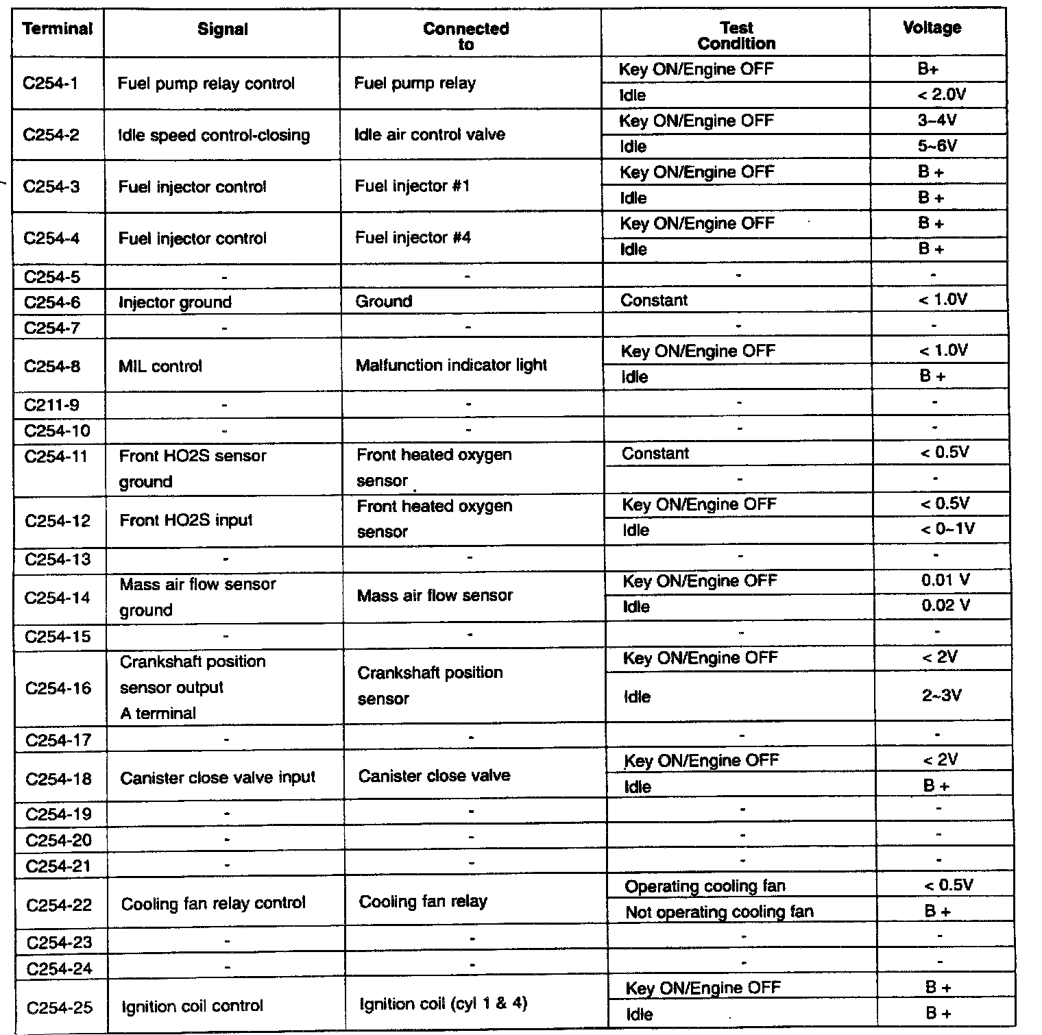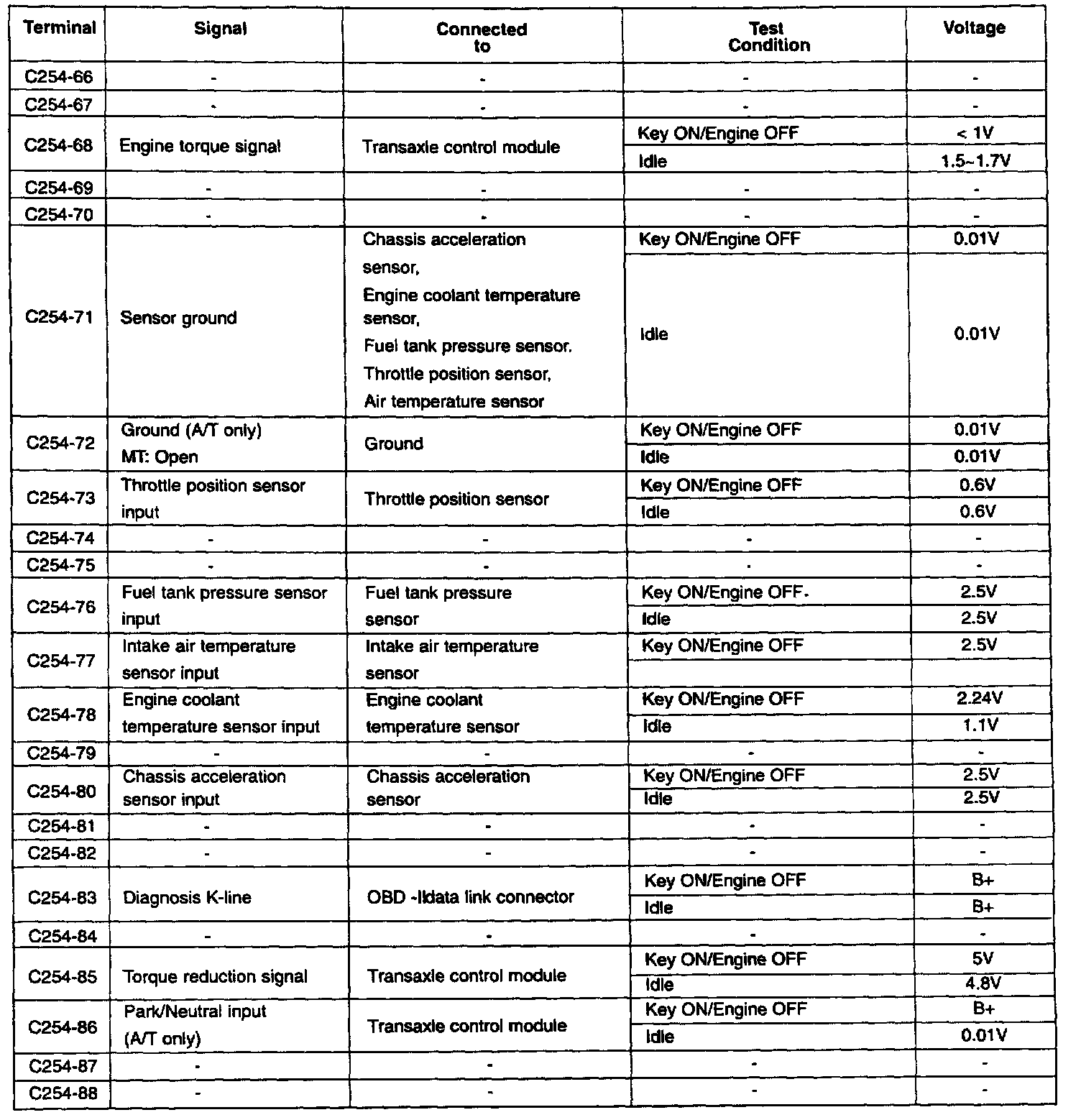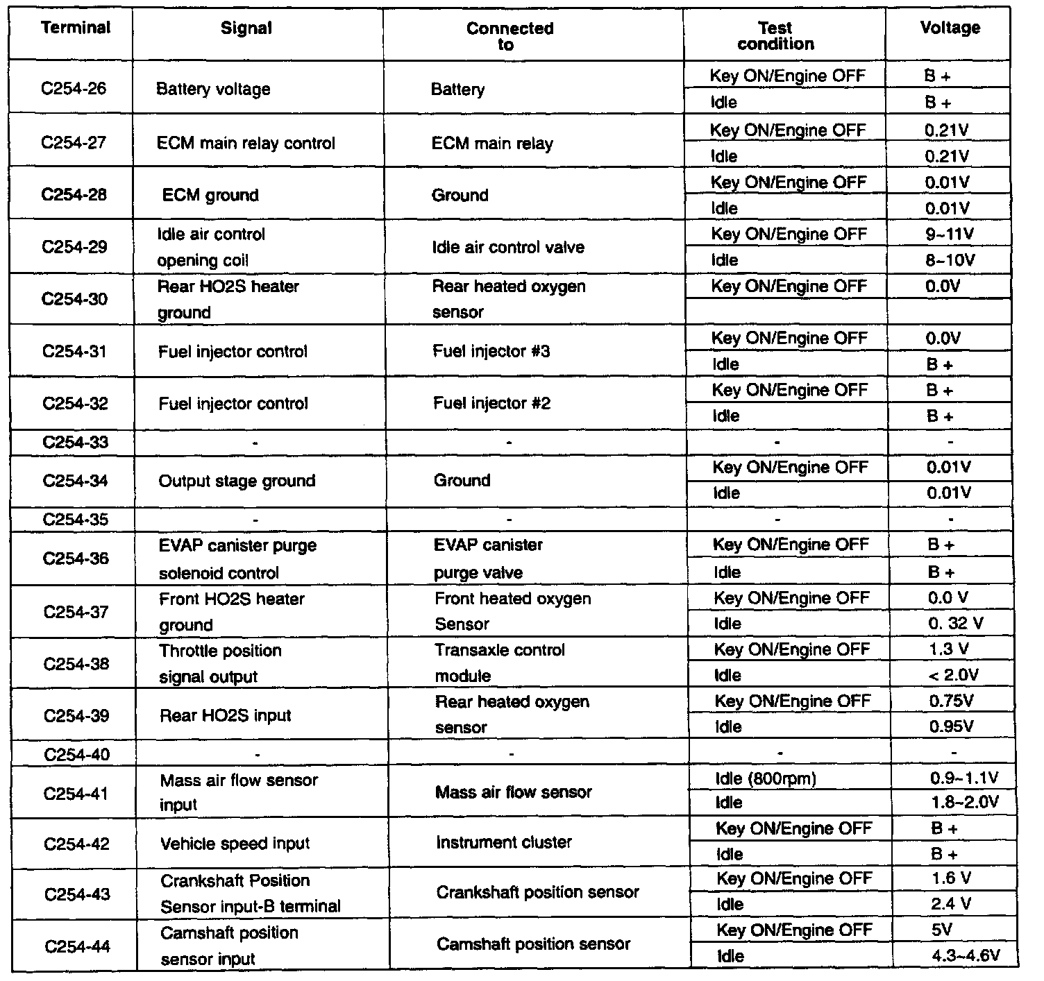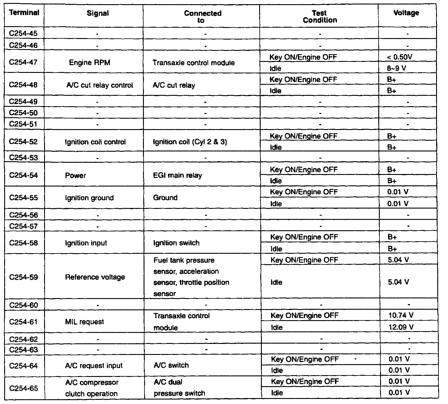 ECM Terminal Voltage Reference Table (Part 4 Of 4):