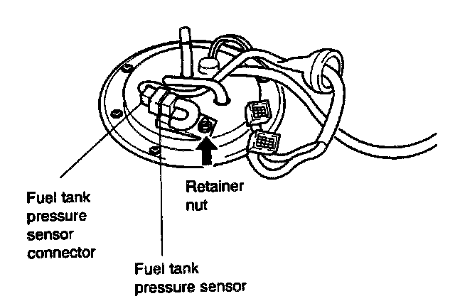 4. Disconnect the fuel tank pressure sensor connector, then remove retainer nut, and remove fuel tank sensor from fuel delivery module.