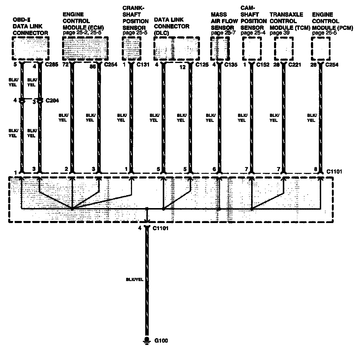 This sample Ground Distribution schematic shows all of the components that share the same ground point.