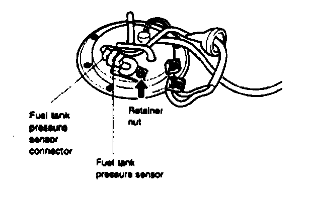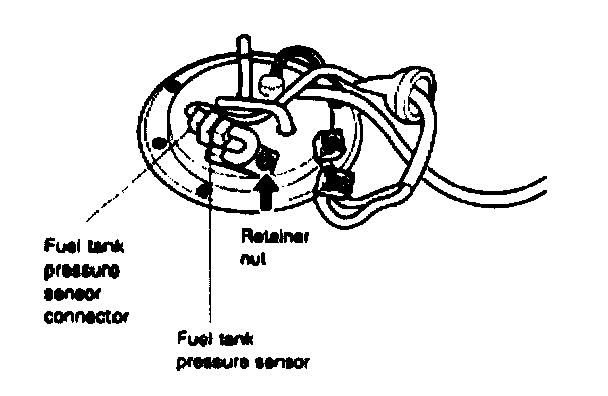 4. Disconnect the fuel tank pressure sensor connector, then remove retainer nut, and remove fuel tank sensor from fuel delivery module.