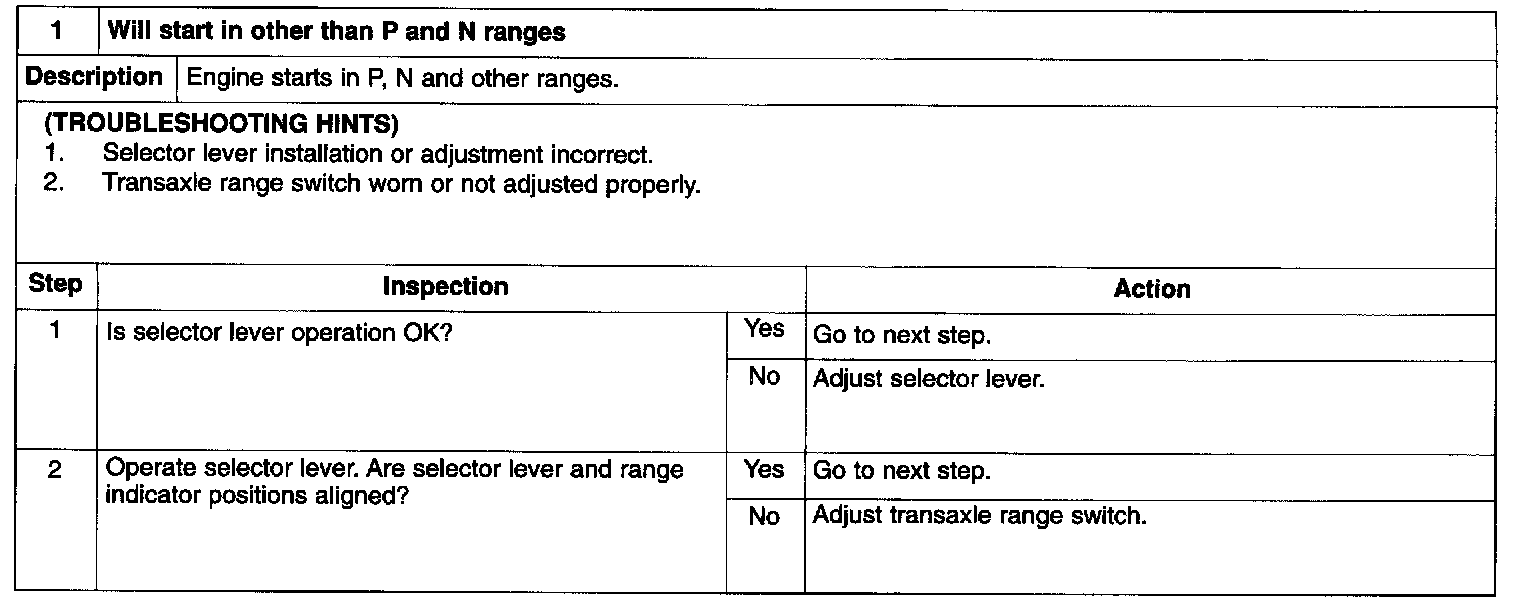 IntroductionMost of the automatic transaxle control system is electrically controlled. This often makes it difficult to diagnose intermittent problems in the system. Before undertaking actual checks, take a few minutes to talk with customers who approach you with driveability complaints. The customer is often a good source of information regarding intermittent problems. Through talks with the customer, one can find out what the symptoms are and under what conditions they occur.