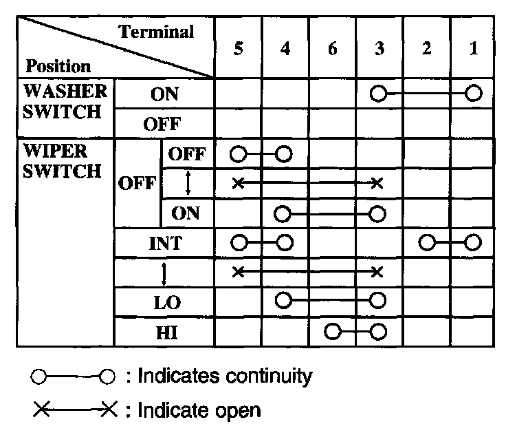 Windshield Washer Switch: Testing and Inspection
