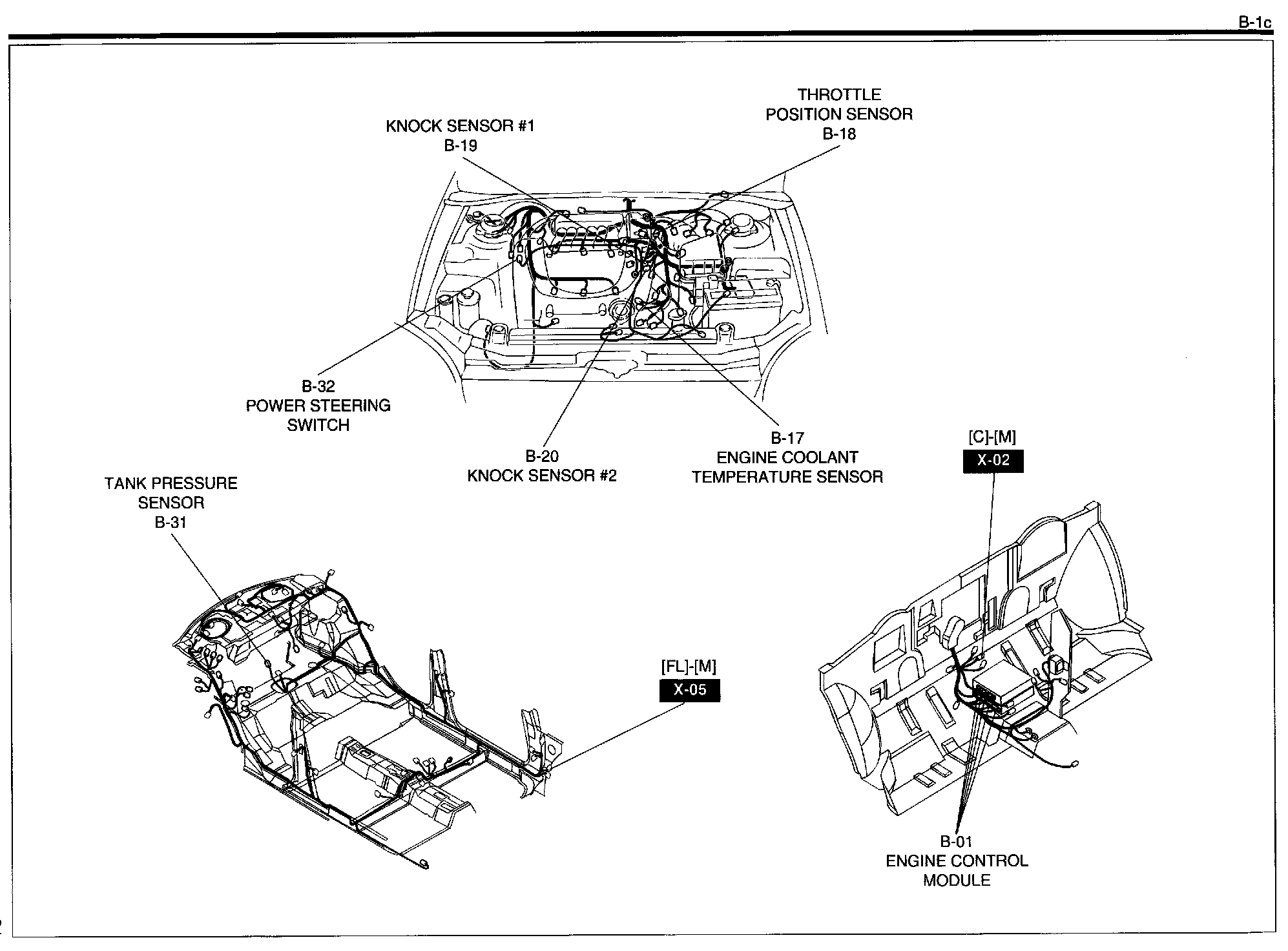 B-1c - Engine Control System (ECM) Harness/Connector Symbols:
