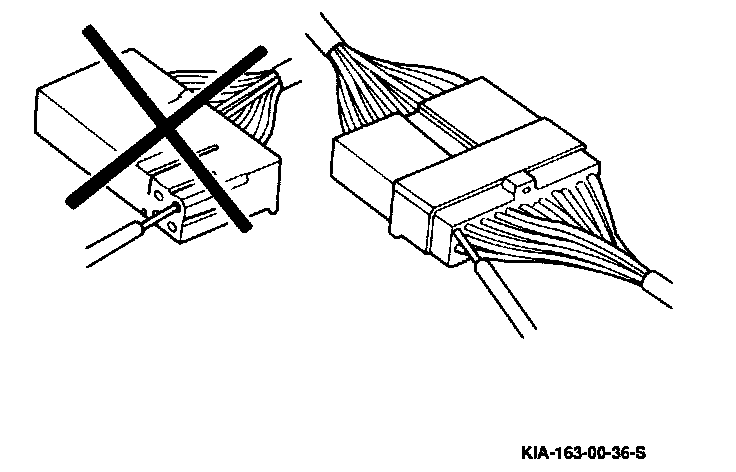 NOTE: Attach as all gauge wire (straightened paper clip) to the tester probe to prevent damage to the connector terminal. Do not damage the terminal when inserting the tester lead.