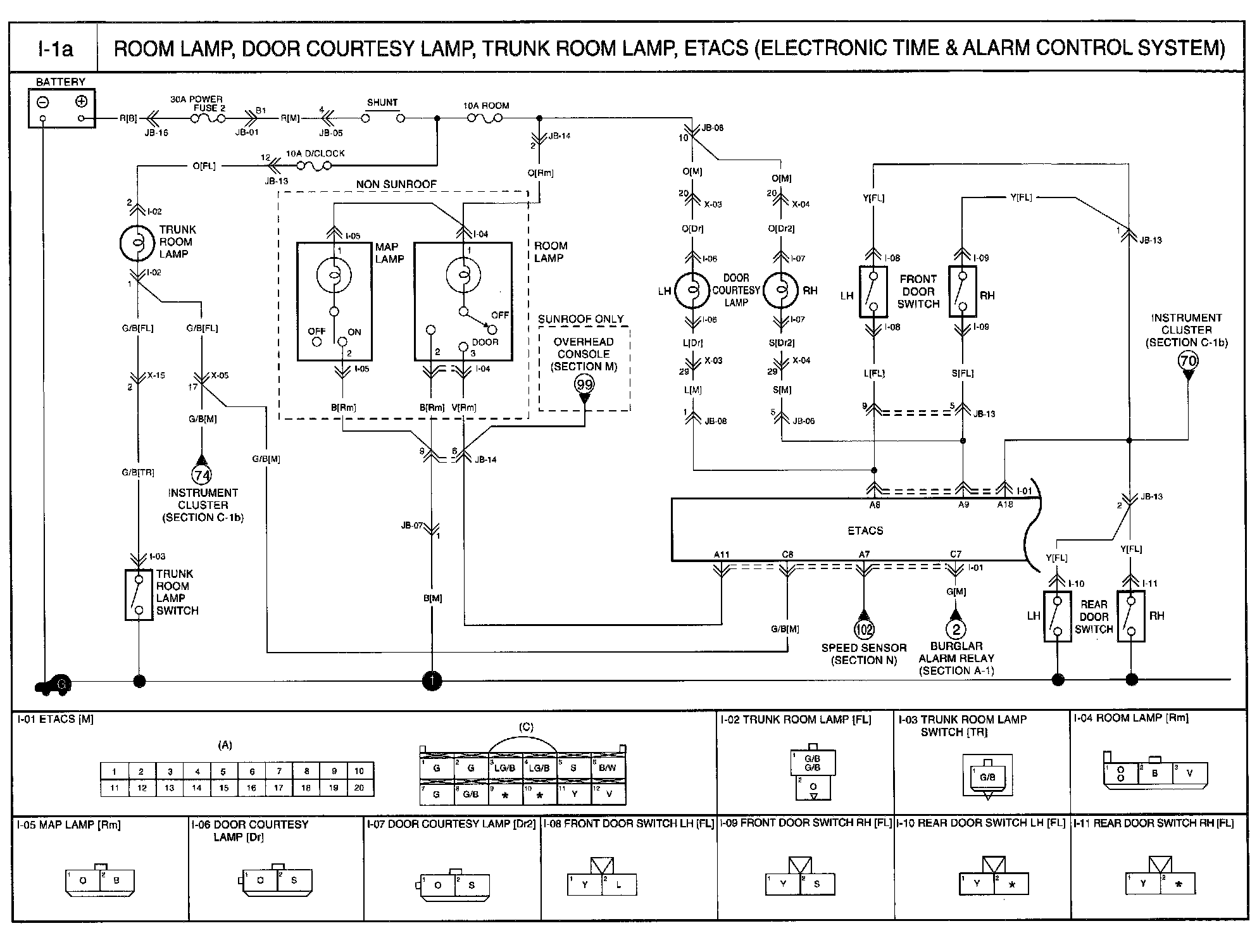 I-1a - Room Lamp, Door Courtesy Lamp, Trunk Room Lamp, ETACS (Electronic Time & Alarm Control System) Circuit: