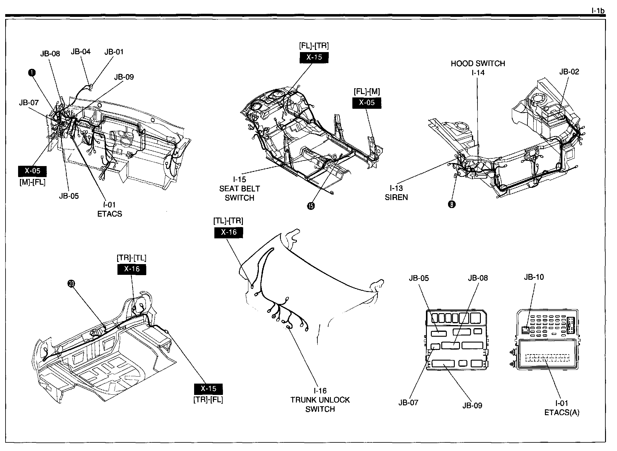 I-1b - ETACS (Electronic Time & Alarm Control System), Hood Switch Circuit Harness/Connector Symbols: