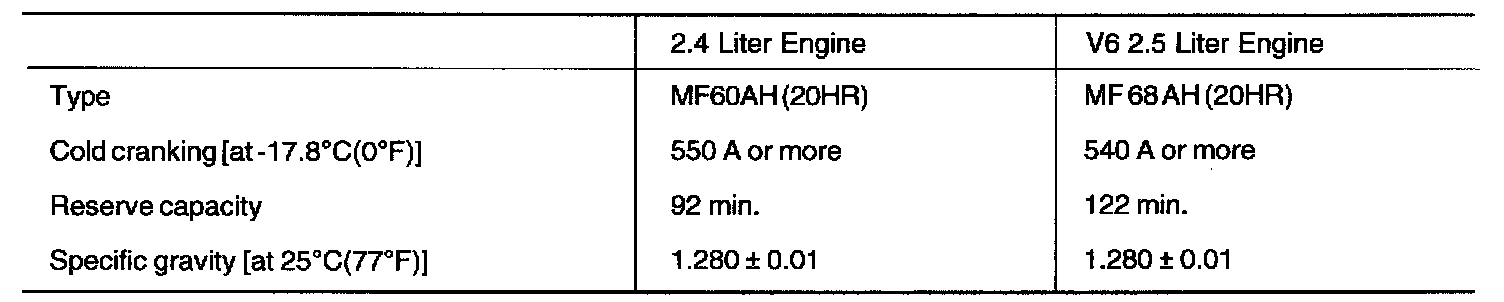 NOTE: COLD CRANKING AMPERAGE is the amperage a battery can deliver for 30 seconds and maintain a terminal voltage of 1.2 or greater at a specified temperature. RESERVE CAPACITY RATING is the amount of time a battery can deliver 25 A and maintain a minimum terminal voltage of 10.5 at 26.7 °C (80 °F).