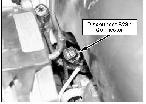 2. Open hood, disconnect bank 2 sensor 1 connector at front corner of left cylinder head and remove connector from bracket.