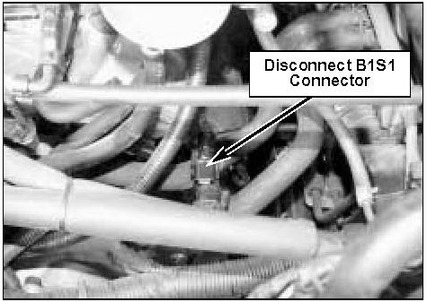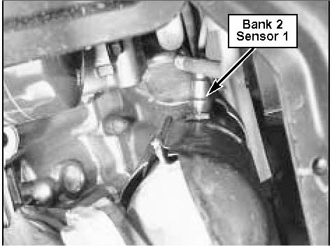 3. Disconnect bank 1 sensor 1 connector at rear corner of right cylinder head and remove connector from bracket.