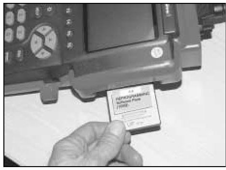 8. Remove the program card from the upper slot on the Hi-Scan Pro tool and insert the reprogramming card.