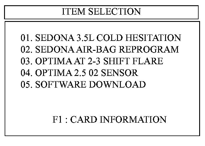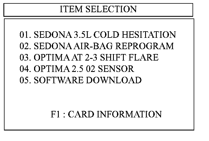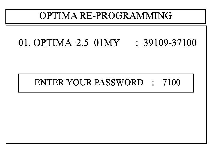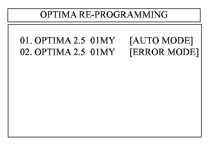 17. Select "OPTIMA 2.5 01MY [ERROR MODE]" and press the "ENTER" key.