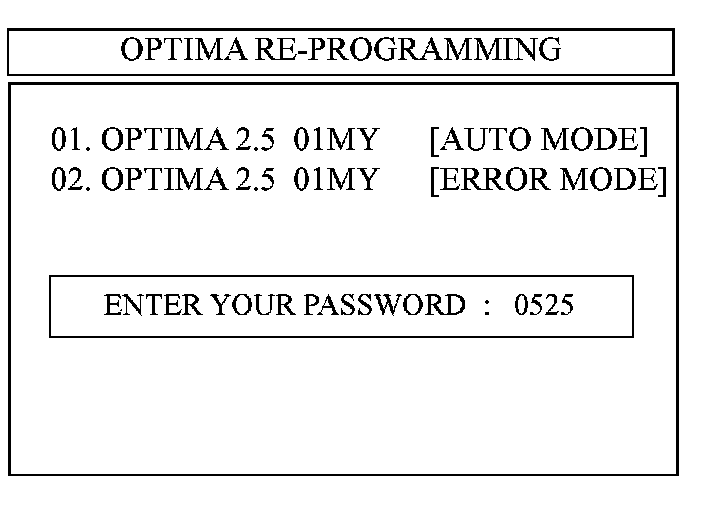 12. Select "OPTIMA 2.5 01MY [AUTO MODE]" and press the "ENTER" key.