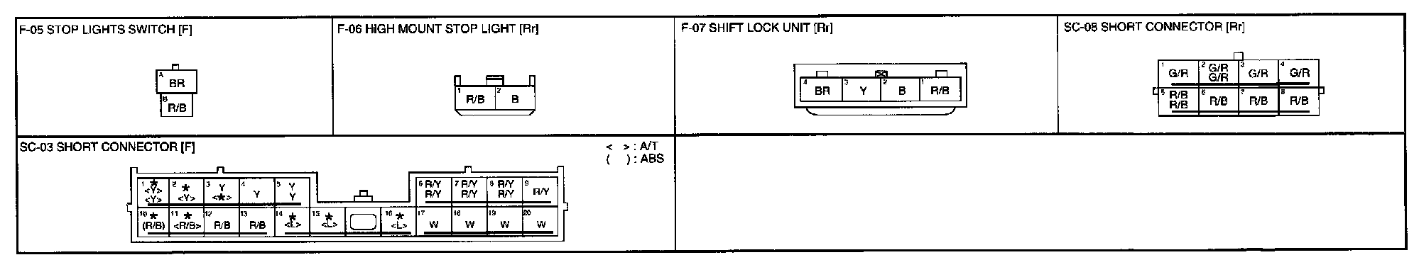 F-2 - Stop Lights, Shift Lock Unit Connectors: