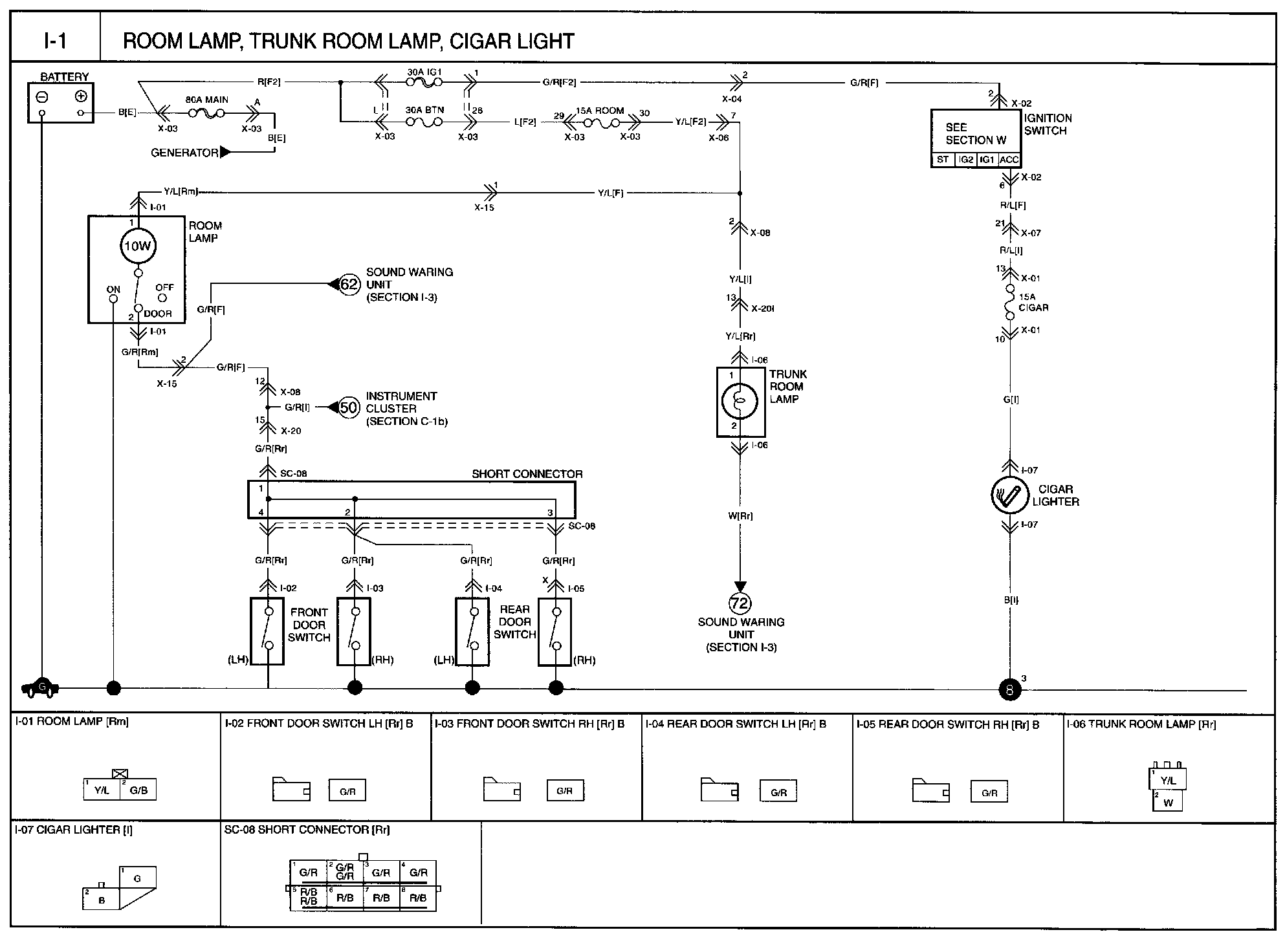 I-1 - Room Lamp, Trunk Room Lamp, Cigar Light Circuit: