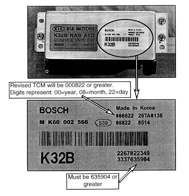 The part number of the revised TCM did not change. However, all TCMs in PDC stock have the revised logic. If in doubt of which TCM a vehicle has, use the illustration for identification.