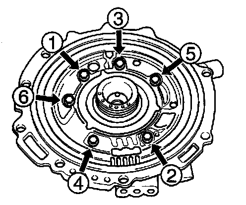 6. Tighten six bolts evenly and gradually in order shown.