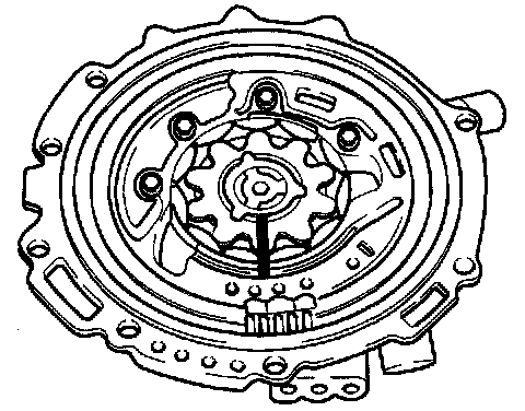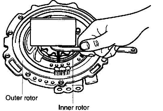 2. Measure clearance between end of oil pump housing and outer rotor and inner rotor at no less than four places along their circumferences.