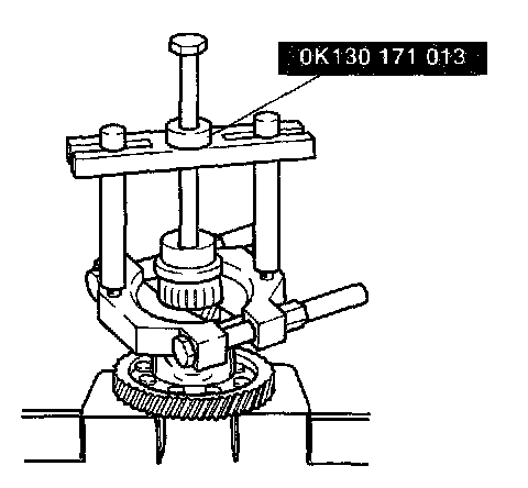 Remove bearing by using SST (OK130 171 013).