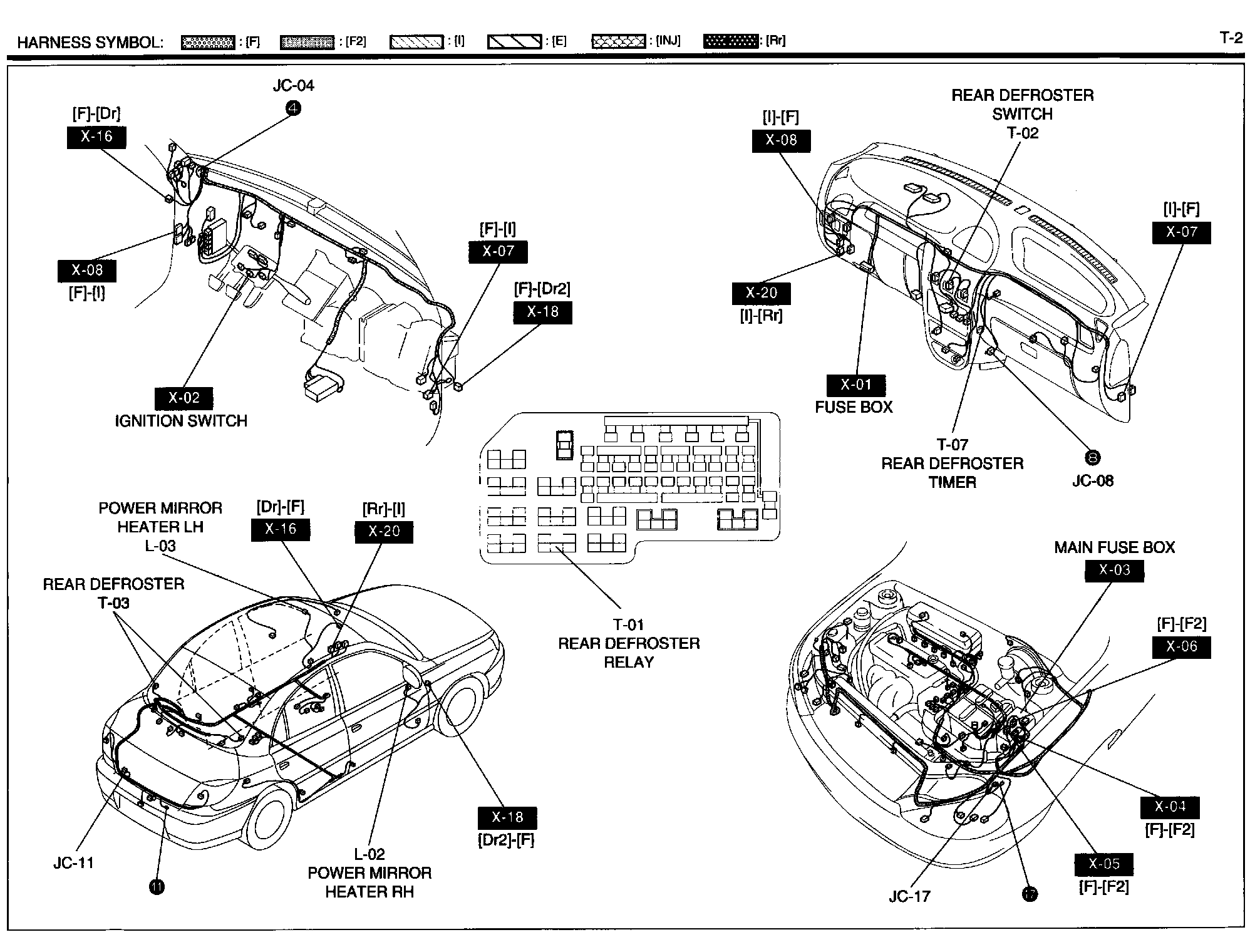 T-2 - Rear Defroster Timer Harness/Connector Symbols: