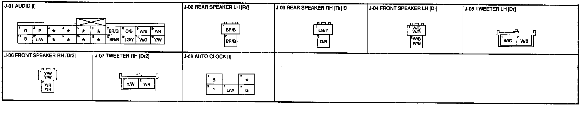 J - Audio System, Auto Clock Connectors: