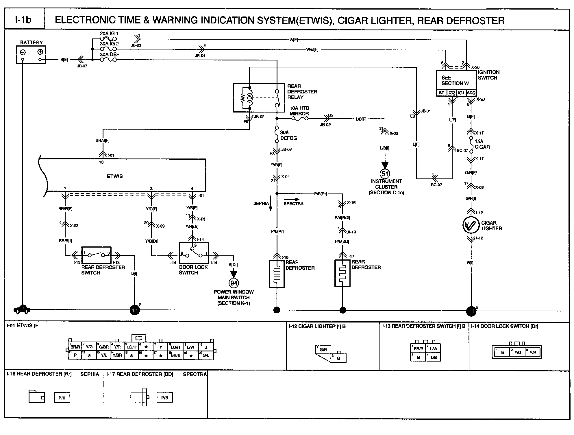 I-1b - Electronic Time & Warning Indication System (ETWS), Cigar Lighter, Rear Defroster Circuit: