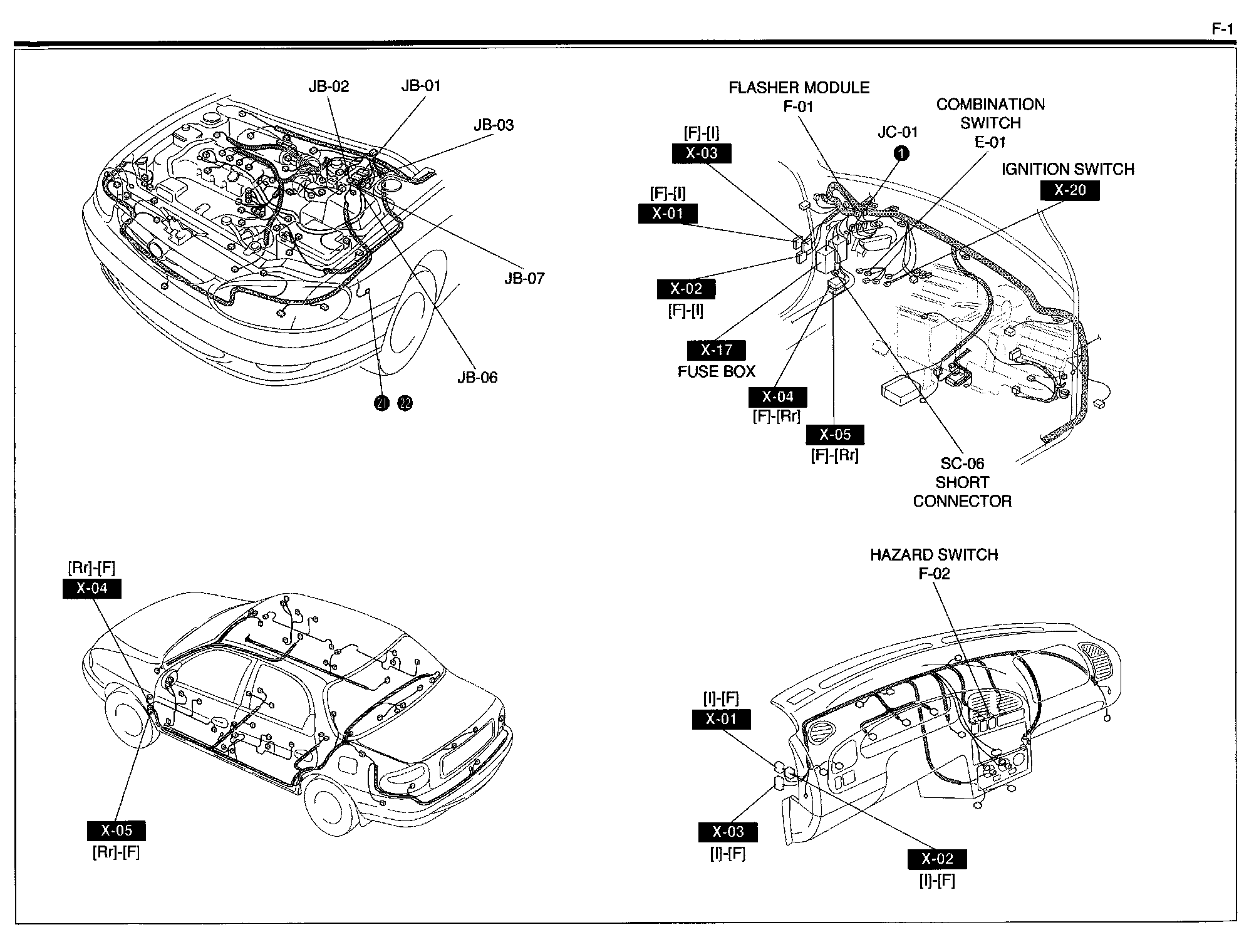 F-1 - Turn & Hazard Flasher Module Harness/Connector Symbols: