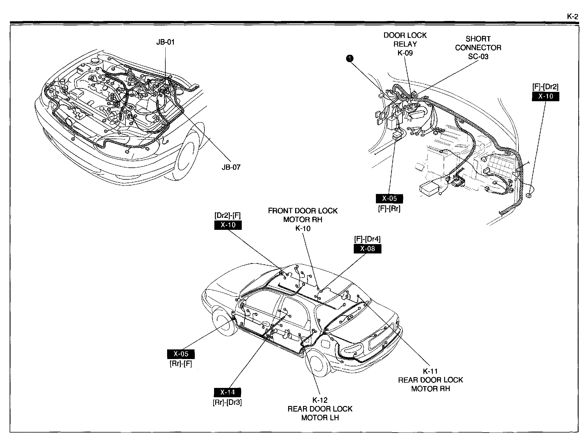 K-2 - Power Door Lock System Harness/Connector Symbols: