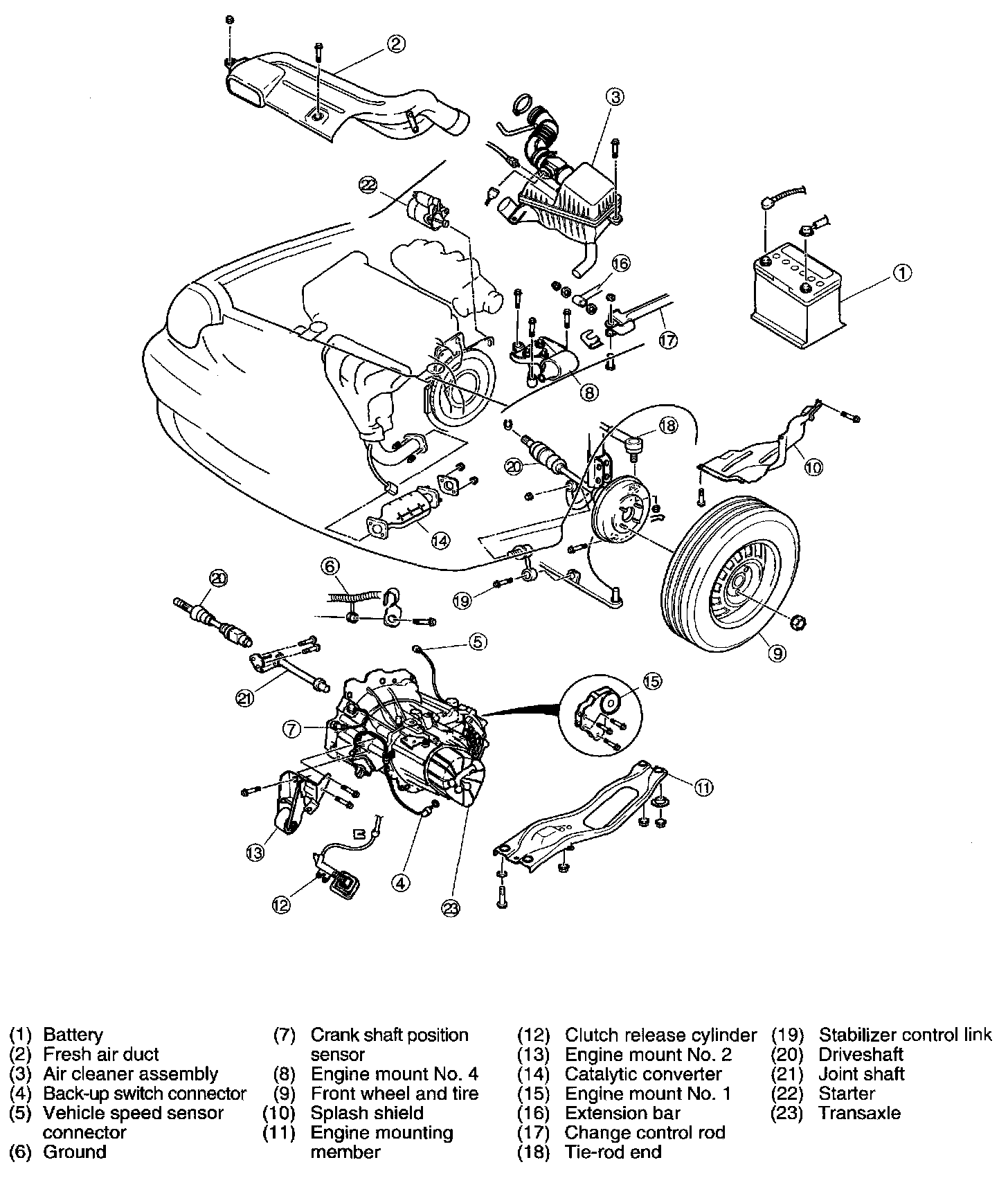 4. Connect transaxle to engine using five mounting bolts through clutch housing.