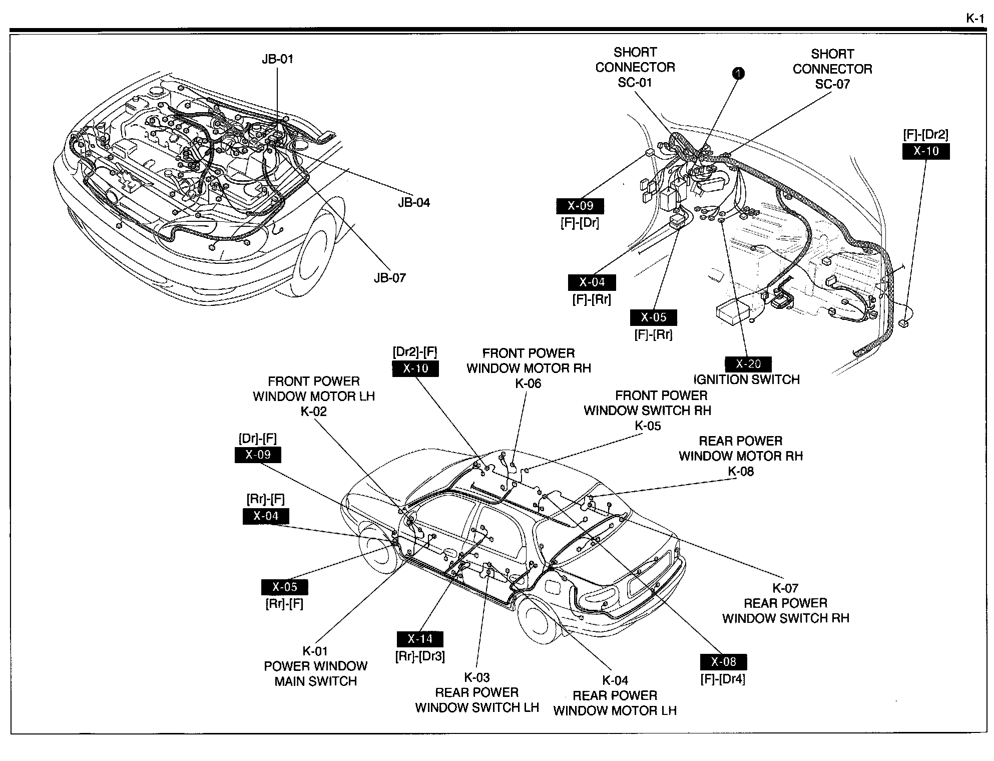 K-1 - Power Window System Harness/Connector Symbols: