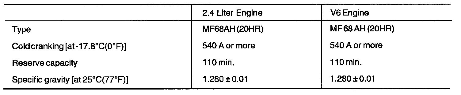 NOTE: COLD CRANKING AMPERAGE is the amperage a battery can deliver for 30 seconds and maintain a terminal voltage of 1.2 or greater at a specified temperature. RESERVE CAPACITY RATING is the amount of time a battery can deliver 25 A and maintain a minimum terminal voltage of 10.5 at 26.7 °C (80 °F).