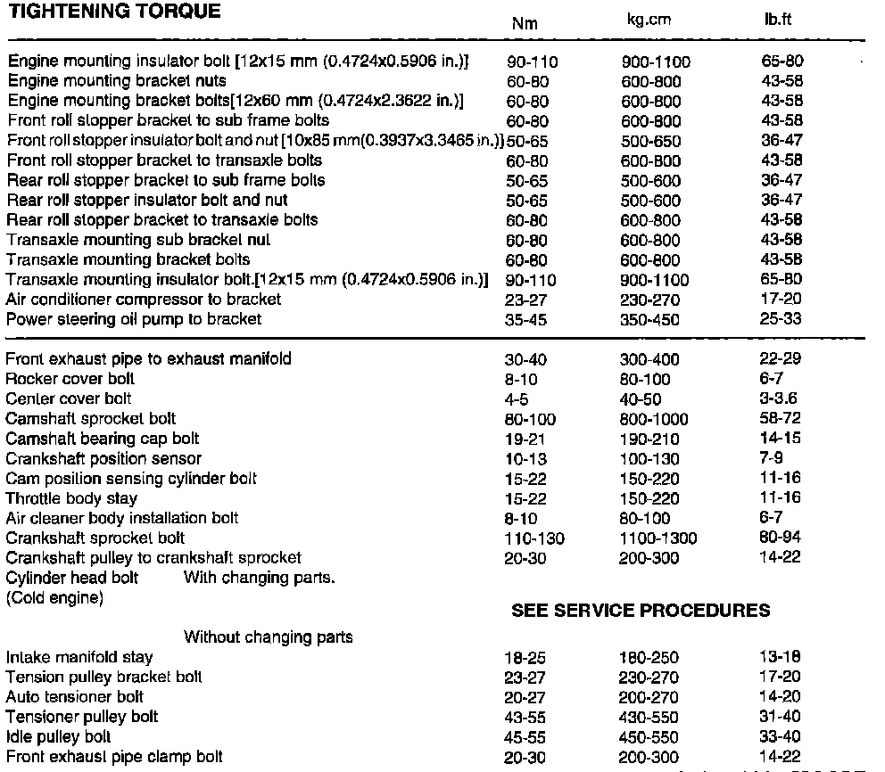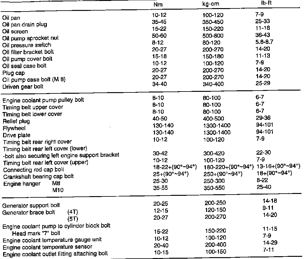 Torque Specifications