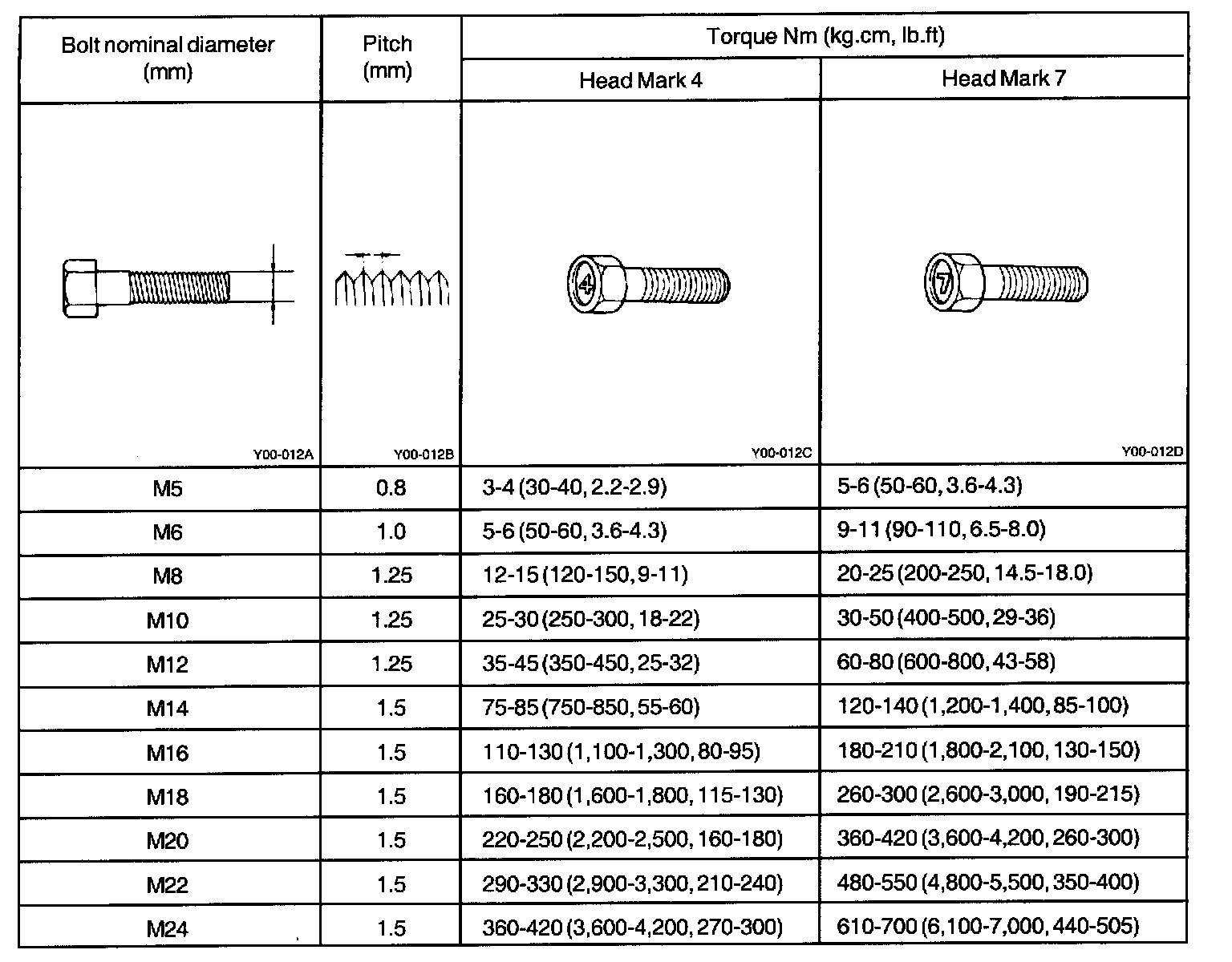1. The torques shown in the table are standard values applicable to tightening performed under the following conditions: