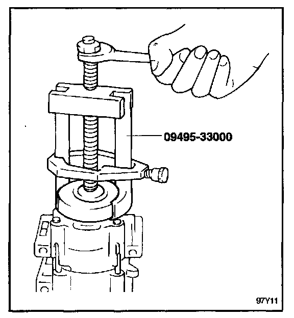 1. Remove the clutch hub and pulley following the procedure given.