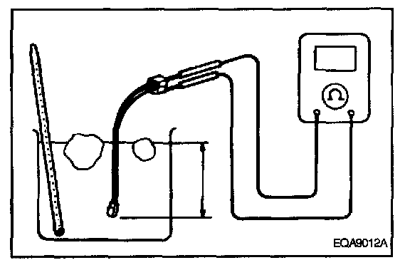 3. Remove evaporator between terminals 1 and 2 of evaporator temperature sensor connector at each temperature.