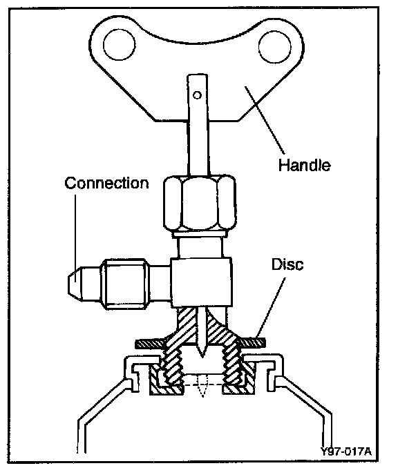 1. Before connecting the valve to the refrigerant container, turn the handle fully counterclockwise.