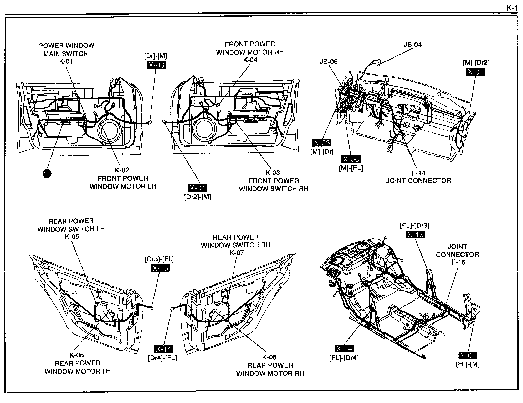 K-1 - Power Windows System Harness/Connector Symbols: