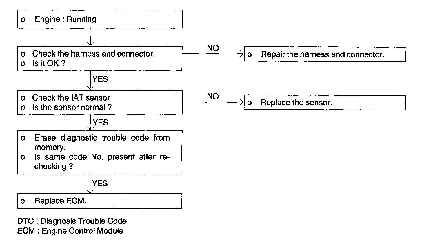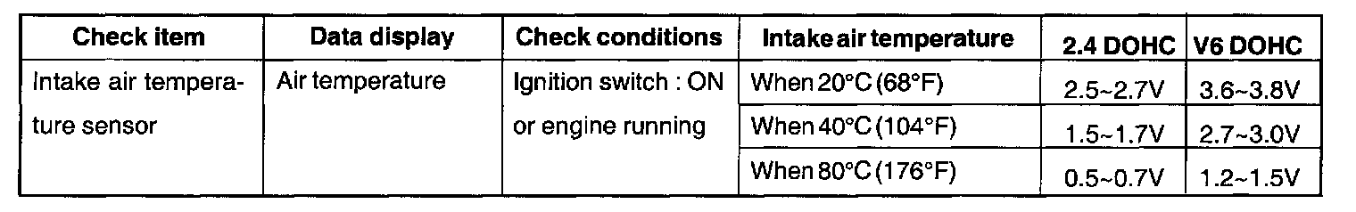 1. When the intake air temperature is detected as below -40 °C or higher than 120 °C.