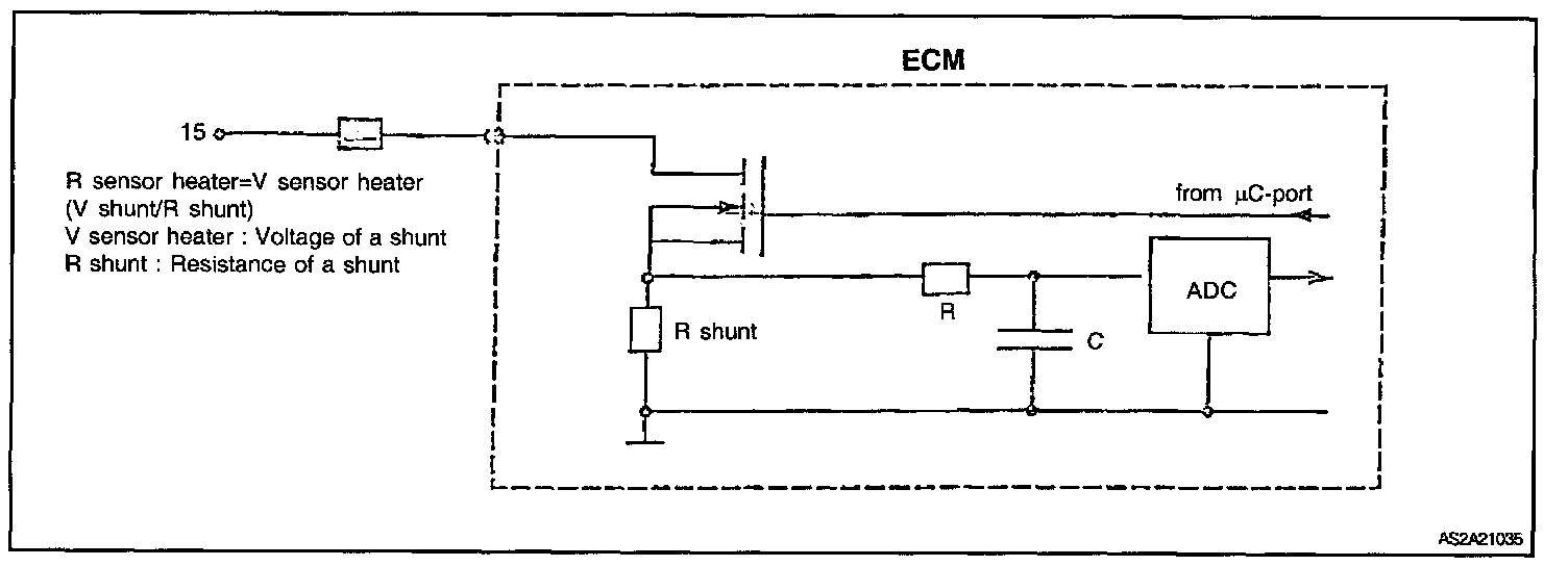 The voltage readings taken from the HO2 Sensor are very temperature sensitive and are not particularly accurate below 300 °C. For this reason, heating of the HO2 sensor is necessary to allow the engine controller to shift to closed loop control as soon as possible. The heating element used to heat the HO2 Sensor must be tested to ensure that it is heating the sensor properly.