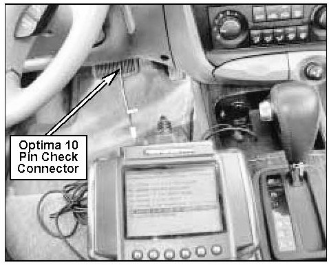 2. Connect the black Optima 10 pin check connector cable (labeled ECU) to the reprogramming adapter.