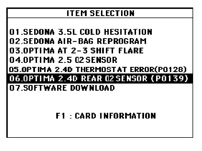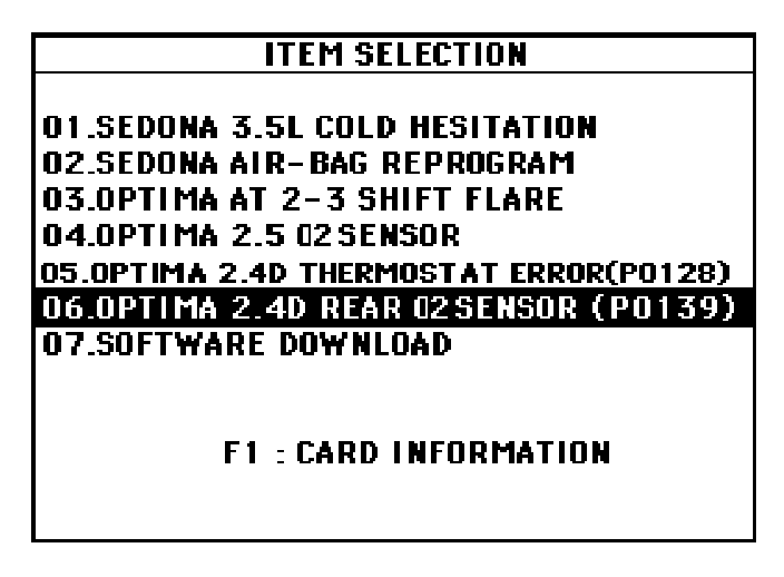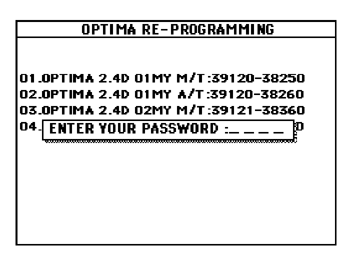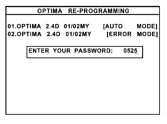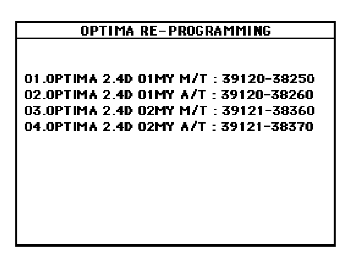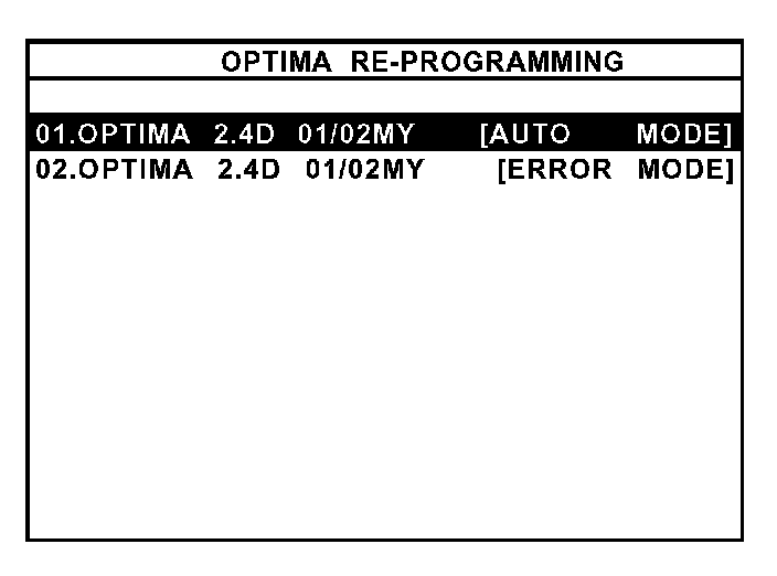 9. Select "01. OPTIMA2.4D 01/02MY (AUTO MODE)" and press the "ENTER" key.