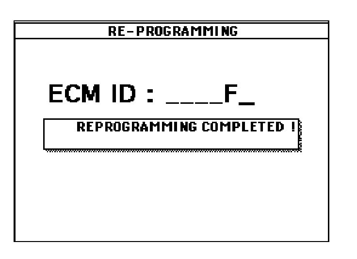 16. After "REPROGRAMMING COMPLETED" message is received, turn ignition key to the "OFF" position and disconnect Hi-Scan Pro tool from the vehicle. Start engine and verify normal operation.