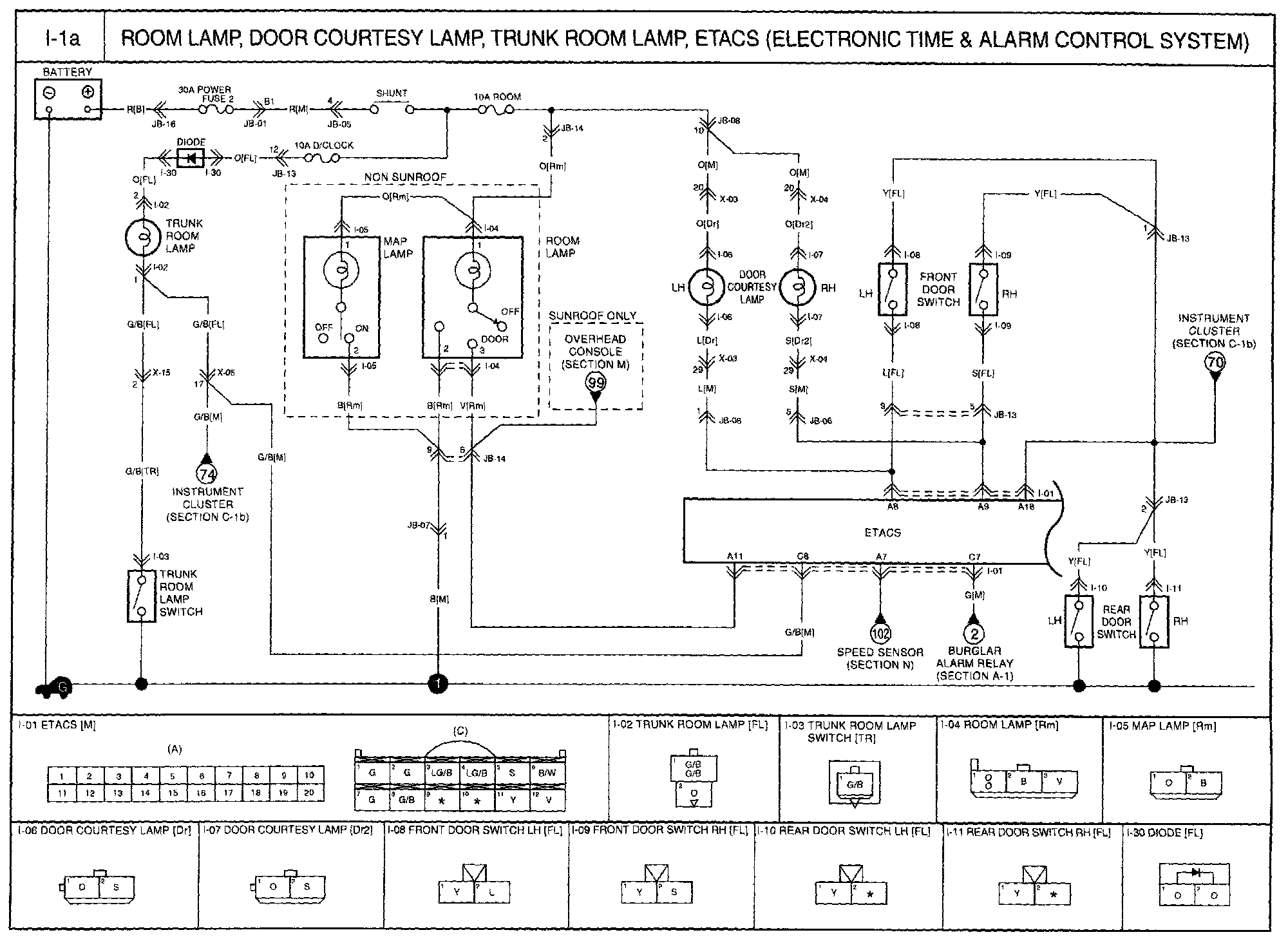 I-1a - Room Lamp, Door Courtesy Lamp, Trunk Room Lamp, ETACS (Electronic Time & Alarm Control System) Circuit:
