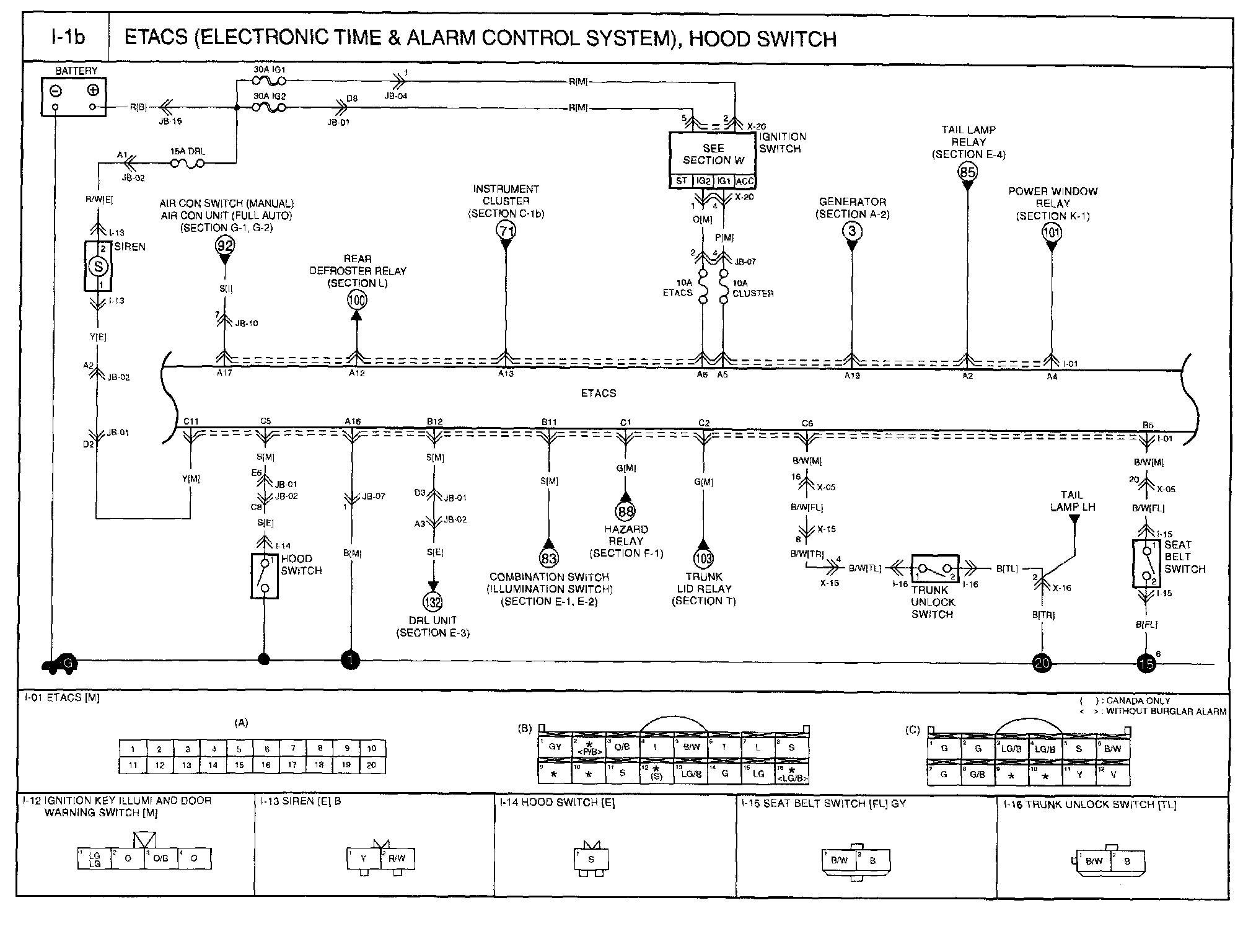 I-1b - ETACS (Electronic Time & Alarm Control System), Hood Switch Circuit: