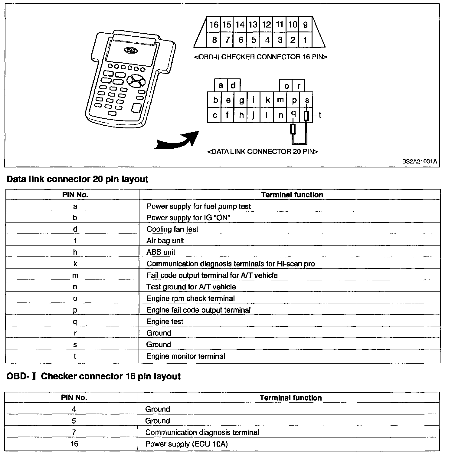 Data Link Connector 20 Pin Layout